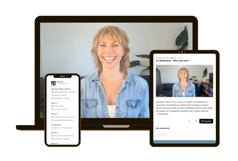 All Lessons, Bonus materials and Zoom links will be inside your online classroom in the Get Your Mojo Back Online Learning Centre.